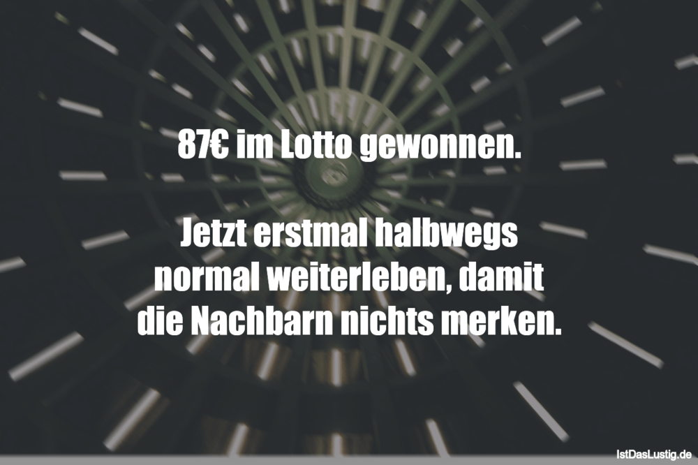 Ich würde ja gern mal im Lotto gewinnen Nur um zu sehen, wie viele Verwandte und Freunde ich eigentlich habe weitere ähnliche WhatsApp Status Sprüche aus den verschiedensten Sprüche Kategorien findest du aus statusspruchde!. Geschäftsführer "Die CHance einen 6er im Lotto zu gewinnen ist größer, als bei uns einen Arbeitsplatz zu erhalten" Geschäftsführer "Die Wissensgier treibt einen immer weiter nach vorne, so dass es schwierig wird, wirklich eines es aufzuhören" Geschäftsführer "Bei uns wird nach GMV (GesunderMenschenVerstand) gearbeitet!". Der Tarif wurde ihrem Geschlechtsteil angepasst Je kleiner desto billiger Sie Telefonieren jetzt gratis!.