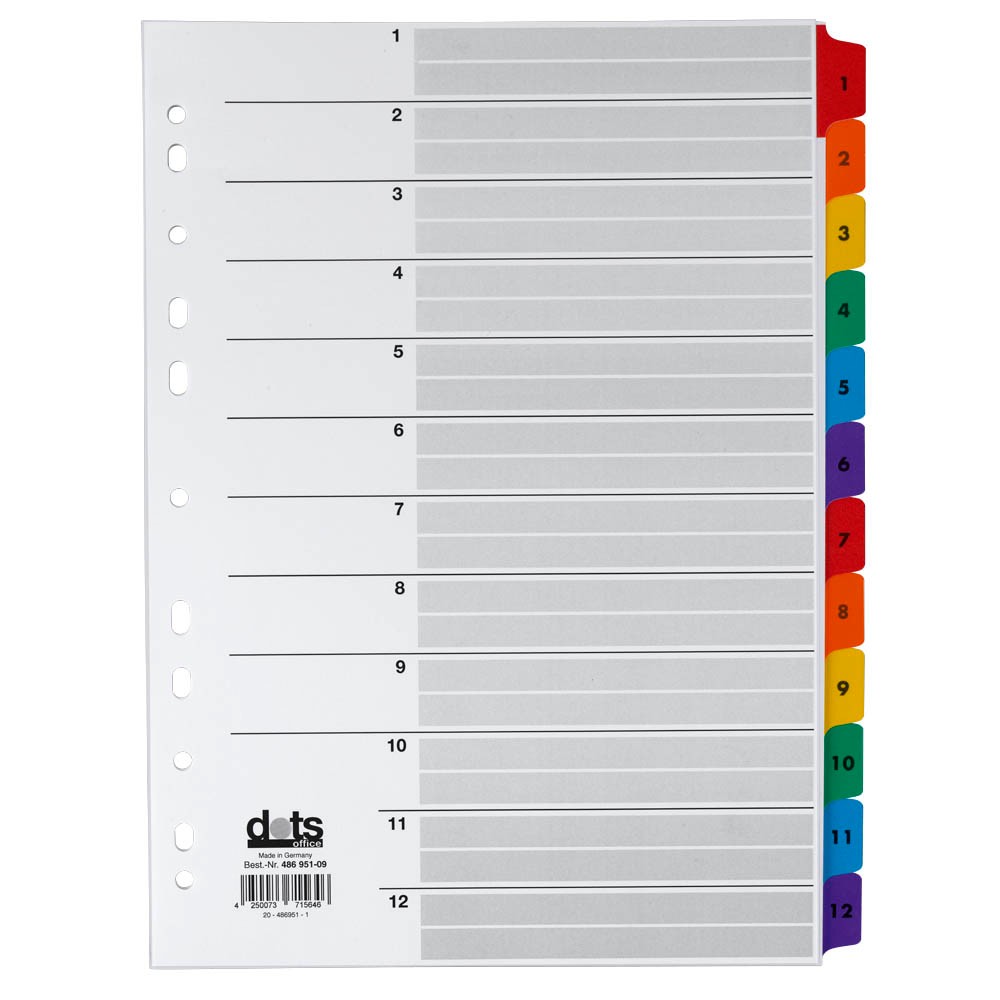 Leitz Register Fur Pc Beschriftbares Deckblatt Und 12 Trennblatter Taben Mit Zahlenaufdruck 1 12 Uberbreite Weiss Mehrfarbig Polypropylen Amazon De Burobedarf Schreibwaren