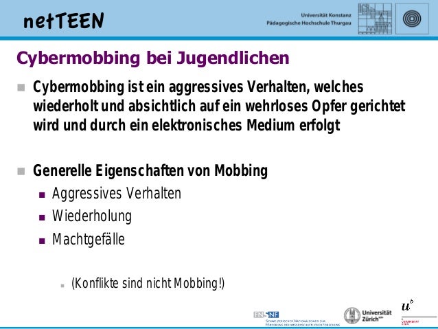 Begriffsklärung Wie der Name schon vermuten lässt, handelt es sich beim Cybermobbing um eine spezielle Art des Mobbings Dabei wird das Opfer Beleidigungen, Nötigungen, Bedrängungen, Belästigungen und Verleumdungen über elektronische Kommunikationswege ausgesetzt. Google Scholar provides a simple way to broadly search for scholarly literature Search across a wide variety of disciplines and sources articles, theses, books, abstracts and court opinions. Das Internet hat sich zu einer gewaltigen Empörungsmaschine entwickelt, einer Gerüchteschleuder, einem Propagandavehikel für jede noch so obskure Theorie Die Freiheit im Netz muss verteidigt.
