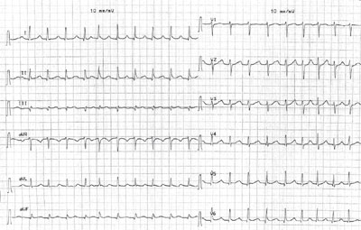Ekg bei vorhofflattern. Bei bekanntem oder vermutetem Präexzitationssyndrom und zusätzlichem Vorhofflimmern oder Vorhofflattern keine negativ chronotrope Therapie mit Wirkung auf den AVKnoten (Digitalisglykoside, Verapamil, BetaBlocker) verabreichen, sondern elektrisch kardiovertieren – ansonsten droht die Induktion von Kammerflimmern!. Bei bekanntem oder vermutetem Präexzitationssyndrom und zusätzlichem Vorhofflimmern oder Vorhofflattern keine negativ chronotrope Therapie mit Wirkung auf den AVKnoten (Digitalisglykoside, Verapamil, BetaBlocker) verabreichen, sondern elektrisch kardiovertieren – ansonsten droht die Induktion von Kammerflimmern!. EKGDiagnostik bei Vorhofflattern (1 p) From Trappe et al EKGKurs für Isabel (17) Invasive elektrophysiologische Diagnostik bei Vorhofflattern (10 p).