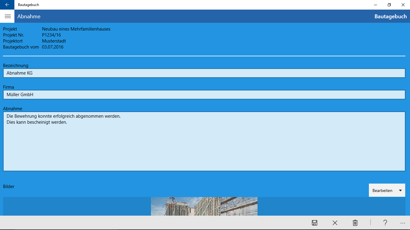 Bautagebuch Software Statt Mustervorlage