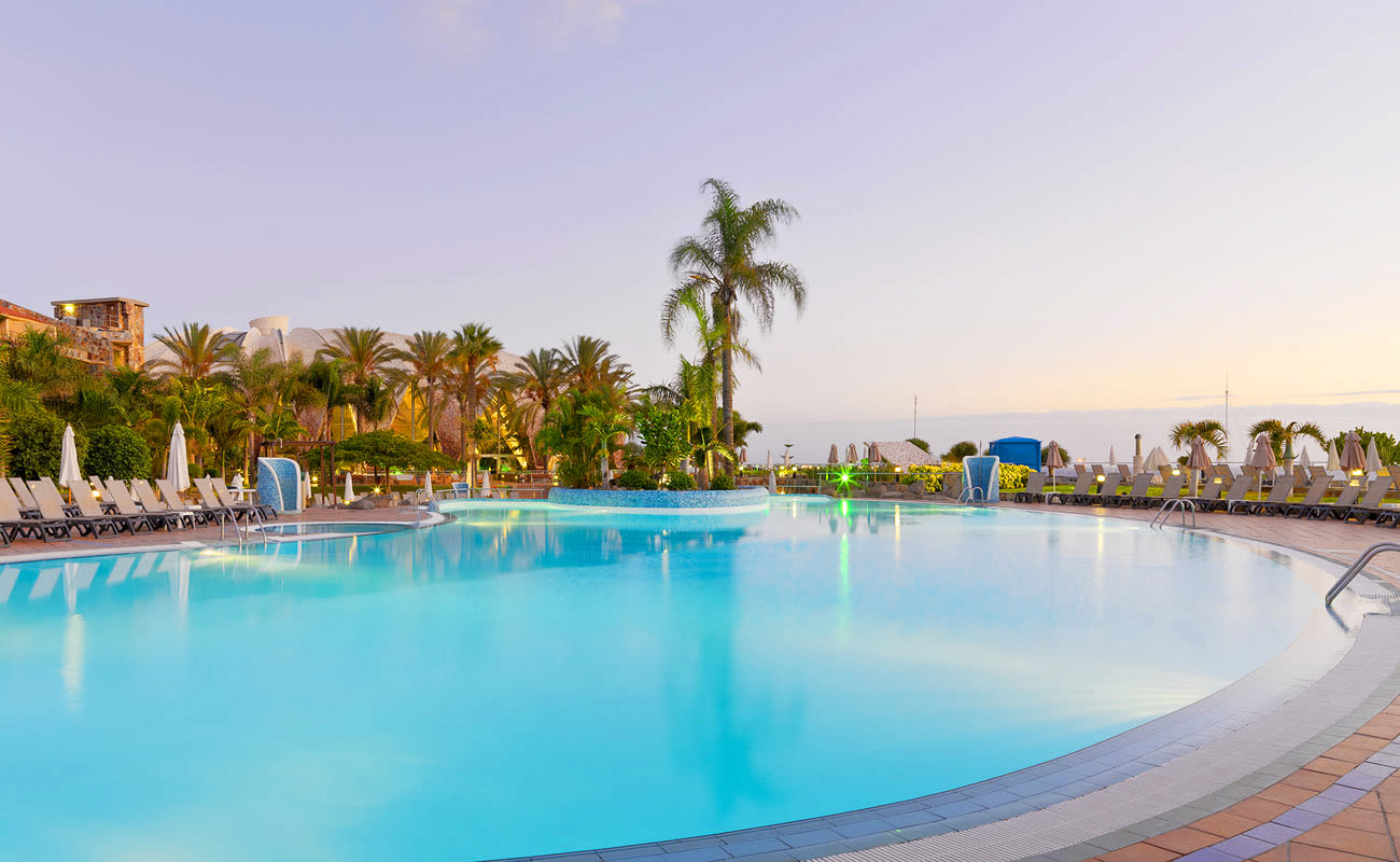 The H10 Playa Meloneras Palace is located in Meloneras, in the south of Gran Canaria, an excellent location in a quiet seafront area next to some of the island's exclusive golf courses Its recently refurbished rooms, new ChillOut terrace with sea views, manicured gardens and Despacio Spa Centre give this hotel its special charm. The H10 Playa Meloneras Palace is just a couple of minutes’ stroll from a sandy beach Maspalomas‘ shops, restaurants and famous dunes are only a 10minute drive away, too The lobby’s grand vaulted ceiling is designed to look like giant palm fronds. The 5* resort H10 Playa Meloneras Palace is located in Maspalomas, Gran Canaria Just in front of Meloneras Beach, the hotel occupies a beautiful spot overlooking the Atlantic Ocean as well as being next to exclusive Golf courses.