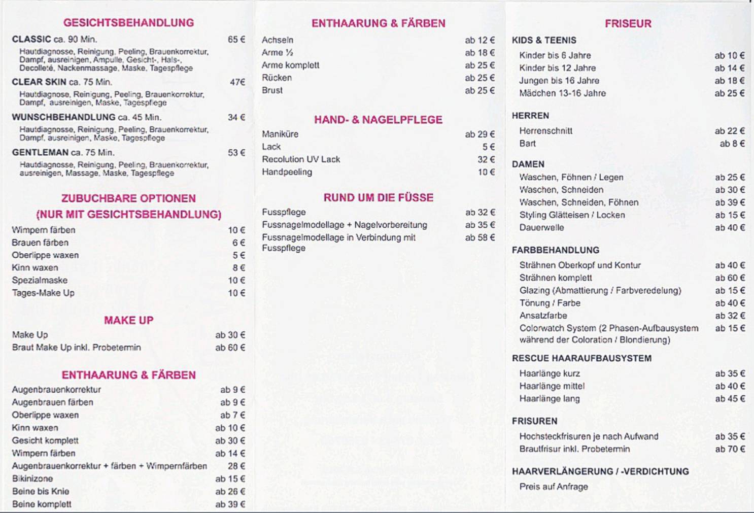 Friseur Dienstleistungen Preisliste