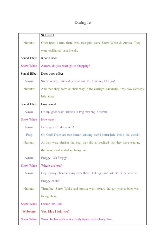 Dialogues Submitted by TE Editor on 27 February, 08 0755 Here we are making available a collection of audio dialogues to enable teachers to help students develop their pronunciation. This dialogue example illustrates the overbearing aspects of Bunny that gather and grow, testing the limits of the others’ patience The dialogue is thus oriented towards building resentments between characters that explain later character choices 4 Learn how to write dialogue that drives plot There are several ways good dialogue drives plot. Dialogue 2 Doctor & Patient Dialogue 3 At the Airport Check in Dialogue 4 At the Hotel Check in Dialogue 5 Introducing Yourself Dialogue 6 Ordering Food at Steakhouse Dialogue 7 At the Pharmacy Dialogue 8 Giving Directions Dialogue 9 Ordering Fast Food Dialogue 10 Job Interview Related Exercises Dialogue Completion Exercises.