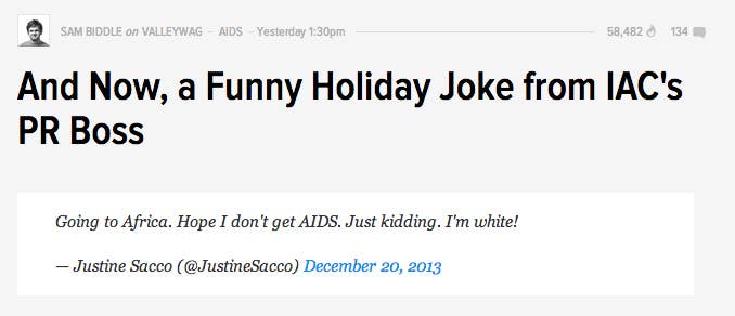 Justine Sacco S Aids Joke Tweet Goes Over As Well As You D Expect Social News Daily