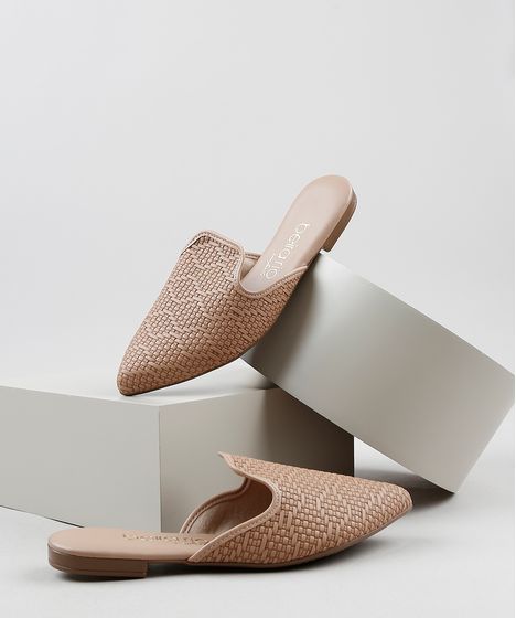 Mule Feminino Beira Rio Texturizada Bico Fino Bege Cea