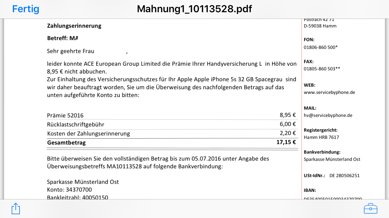 Kosten Bei 1 Zahlungserinnerung Versicherung Mahnung Handyversicherung