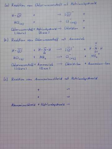 SäureBaseReaktionen (=ProtolyseReaktionen) In diesem Kapitel geht es um die zweite Möglichkeit, wie eine chemische Reaktion ablaufen kann Dabei werden zunächst einige typische Beispiele betrachtet Danach wird die Definition (die bis dahin sowieso wohl schon vielen klar sein wird) aufgestellt. Reduktionsmittel, Säure, Base, Oxidation, Reduktion, Protonierung (= Hinzufügen eines Protons), Deprotonierung (= Entfernung eines Protons) Lösung Beispiele 2 Na Cl 2 2 Na Cl − und HCl NH 3 Cl − NH 4 Redoxreaktion = Elektronenübergang SäureBaseReaktion = Protonenübergang. Es kann sich als Base und auch als Säure verhalten So kannst du ebenfalls festhalten, dass eine Säure in einer Reaktion mit Wasser stets H 3 O Ionen bildet Betrachten wir als Beispiel eine Reaktion von Chlorwasserstoff (HCl) mit Wasser, wobei ersteres die Säure ist HCl H 2 O H 3 O Cl –.
