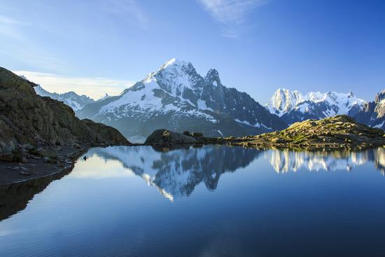The Snowy Peaks Of Mont Blanc Are Reflected In The Blue Water Of Lac Blanc At Dawn France Photographic Print Roberto Moiola Art Com