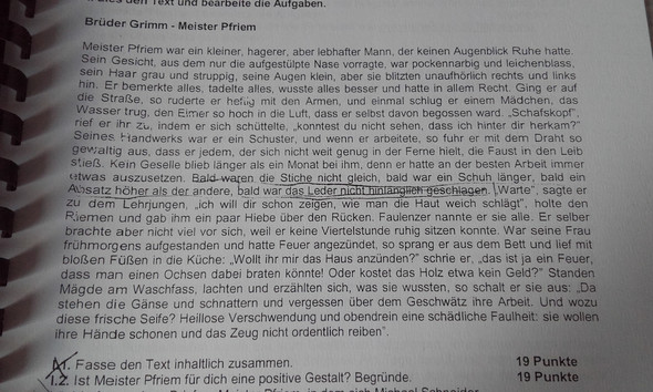 Bruder Grimm Meister Pfriem Fragment Zusammenfassung Schule Deutsch