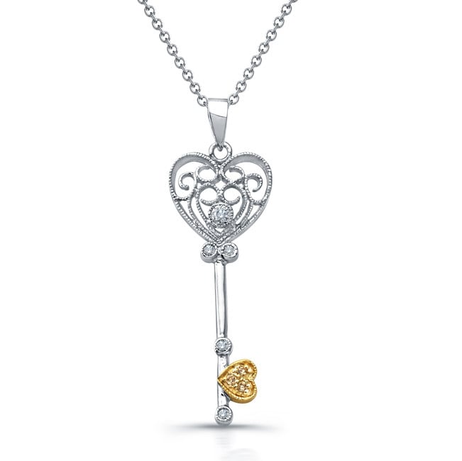Diamond Accent Key To My Heart Pendant In Sterling Silver And 10k Rose Gold