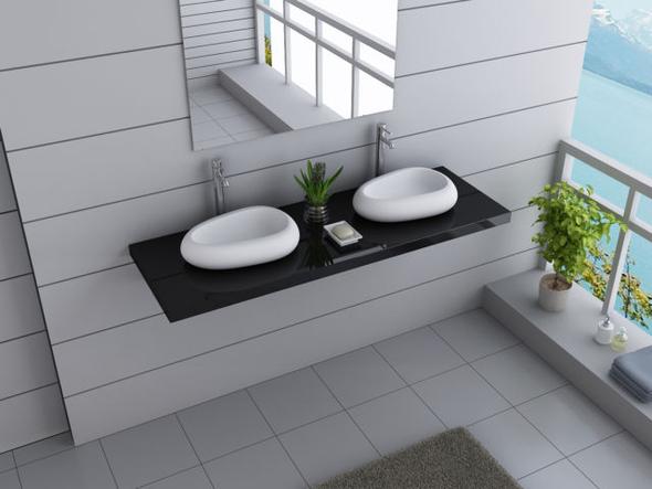 Badezimmer Set Schwarz Seidenglanz Miramar 02 140cm Doppel Waschtisch
