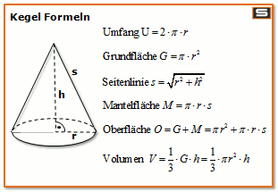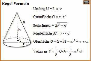 Kegel Volumen Mantel Oberflache Berechnen Formel