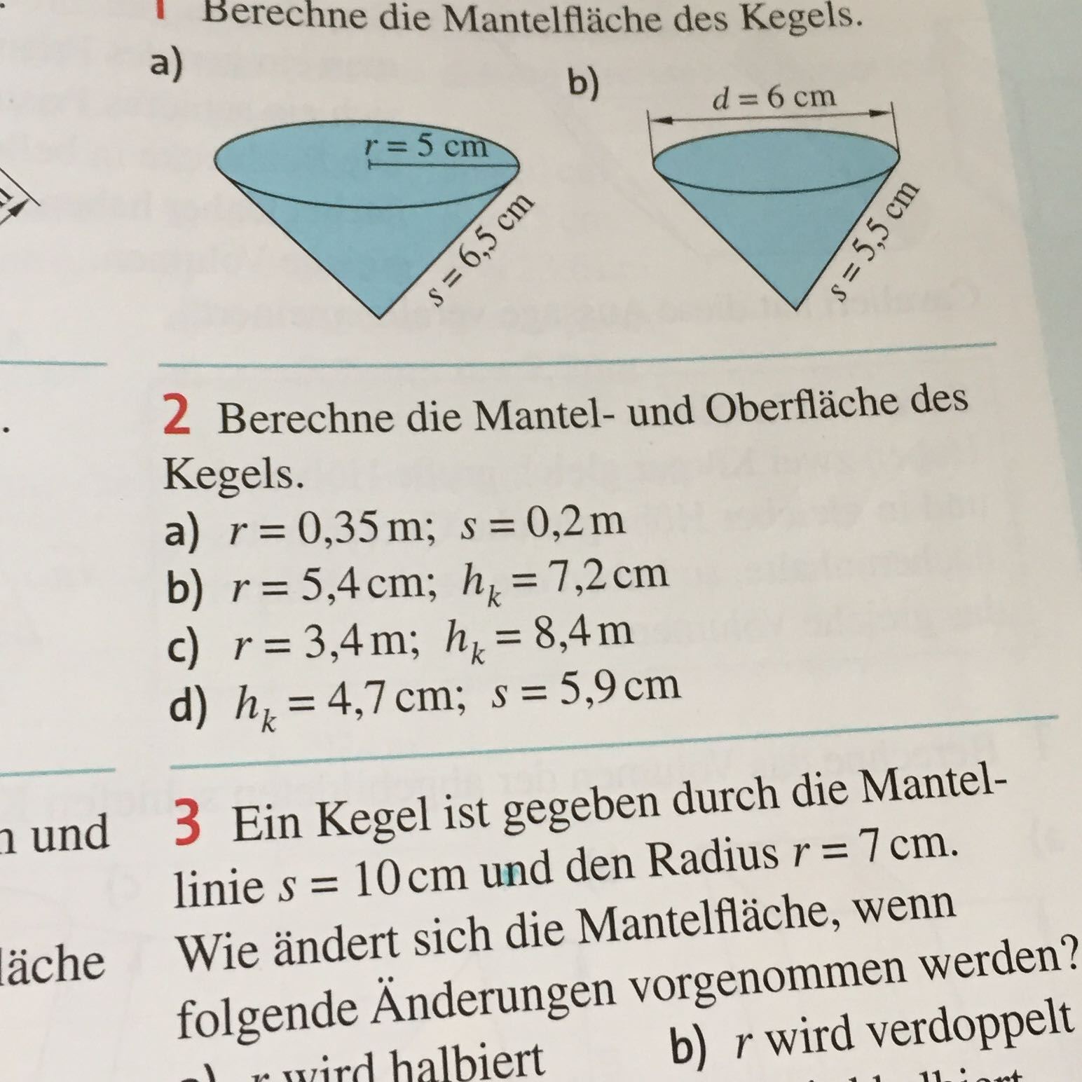 Wie Berechnet Man Den Oberflacheninhalt Kegel Wenn Mantellinie S Mantelflache Gegeben Ist Mathe